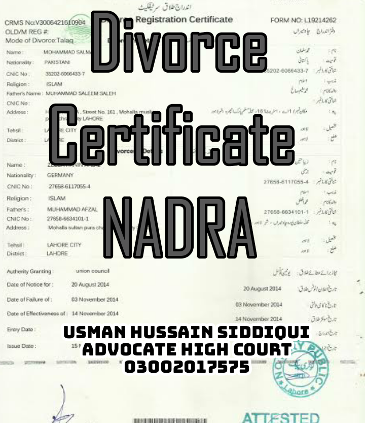 We will facilitate Nadra KHULA Certificate, Nadra Divorce Certificate in separate fees.
