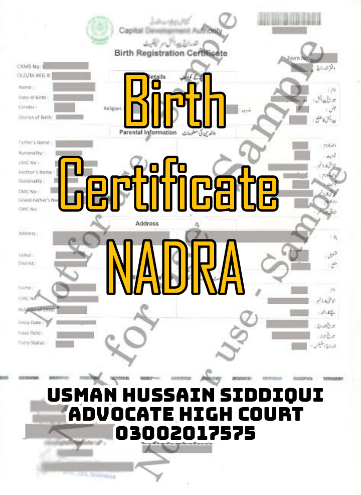 Requirements for a NADRA KHULA certificate: